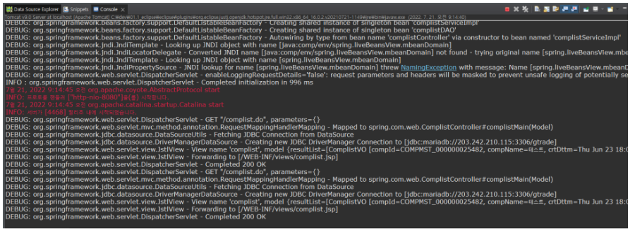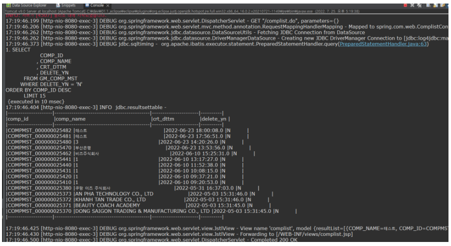 <!-- SQL 결과 조회된 데이터의 table을 로그로 -->